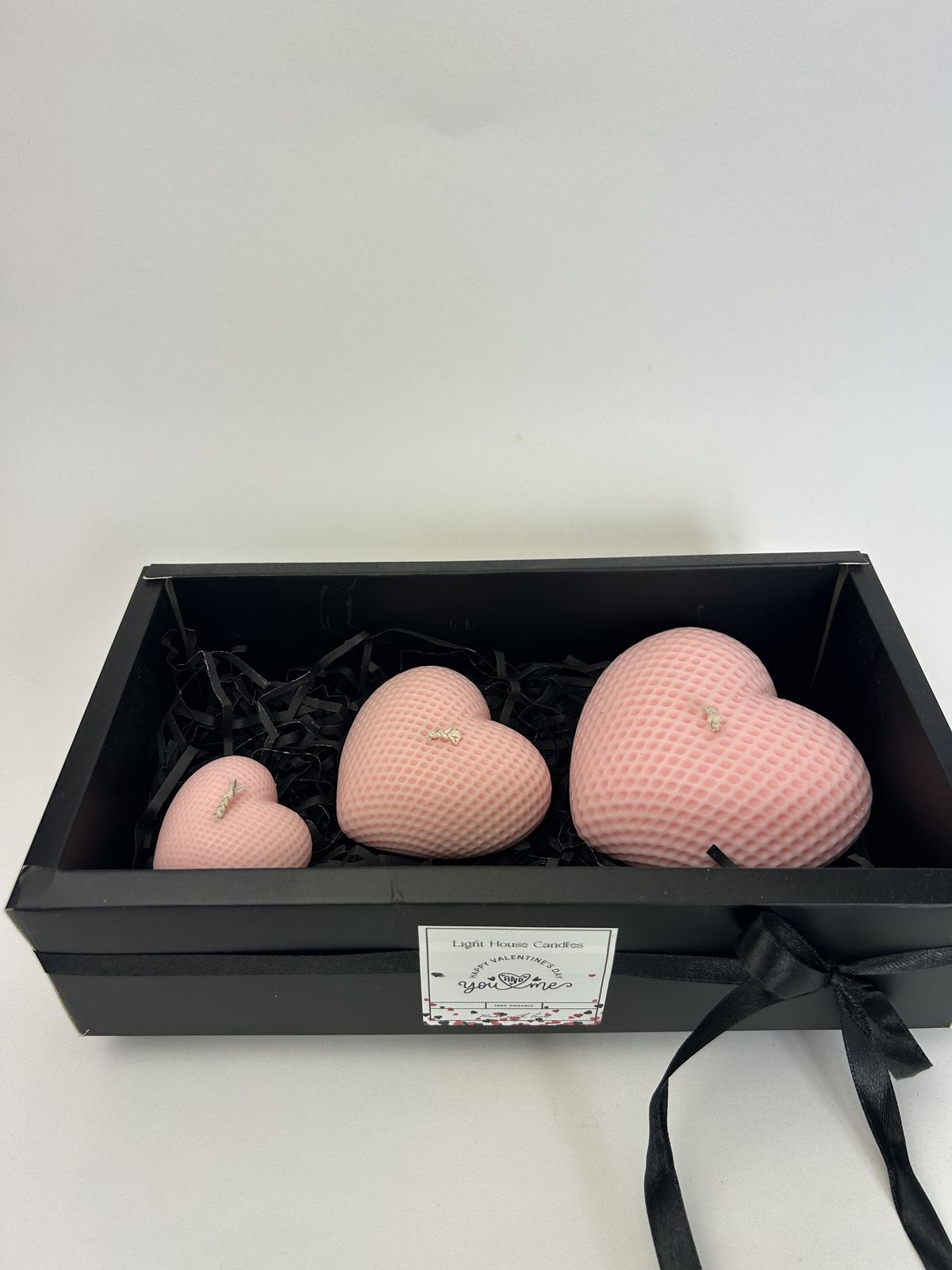 Χειροποίητο σετ κεριών από ροζ καρδιές κατασκευασμένο από 100% φυτικό κερί σόγιας και αρωματισμένα με υψηλής ποιότητας αρωματικά έλαια, συνδυάζοντας ζεστασιά, ρομαντισμό και κομψό σχεδιασμό.